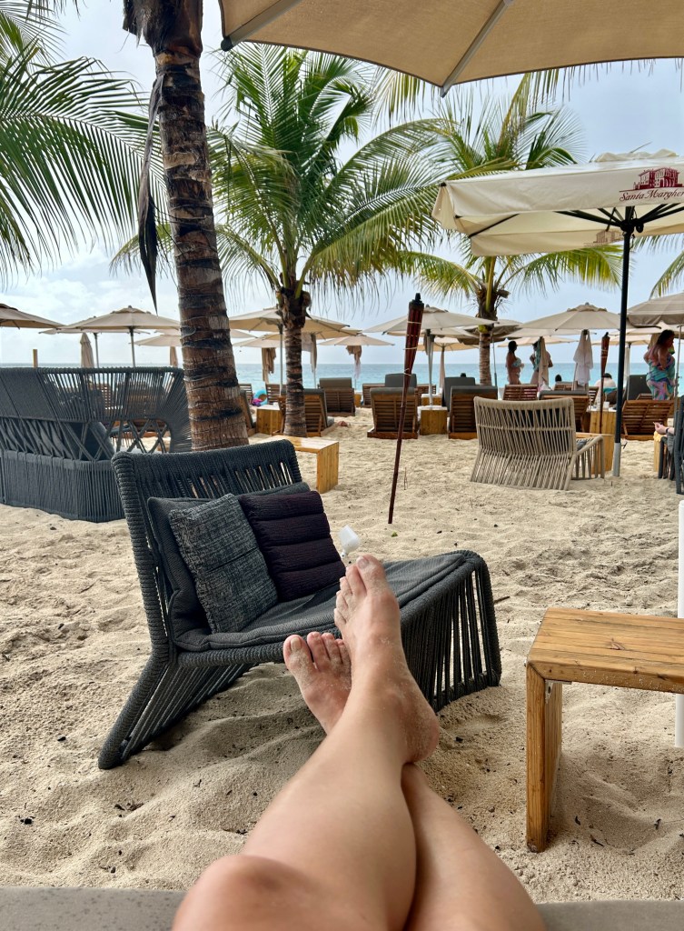 We found a spot in the sand and laid down and enjoyed the beautiful sun and the waves, and watched local guys skim board. The waves were good size and the undercurrent was pretty strong. We didn’t go too far in the water. It was a little cold. We could not believe when we were walking across the sand how thick it was. I’ve never felt sand bog as deep as this sand bogged. It was very coarse, but beautiful.