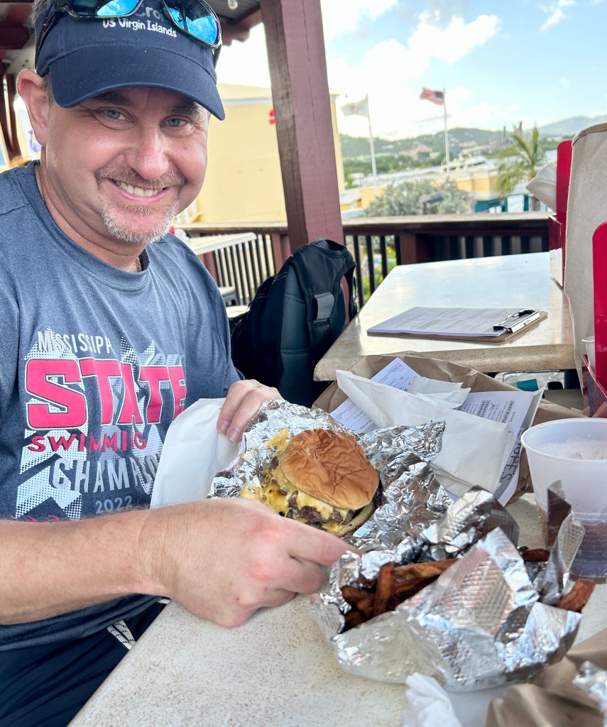 We walked back a couple blocks to where the taxi dropped us off and ate lunch at Shupes on the boardwalk. Shupes is a hamburger joint. It reminded us of a similar place on St. Thomas. They have menus on the table and you place your order on the menus. The burgers are amazing! Our waiter was a travel waiter from the mid-west and had just arrived at the island that day. He was planning to work for a few months and travel to all the surrounding islands. We loved the hour sitting on the upper deck and watching the ships in the harbor and enjoy the beautiful day.