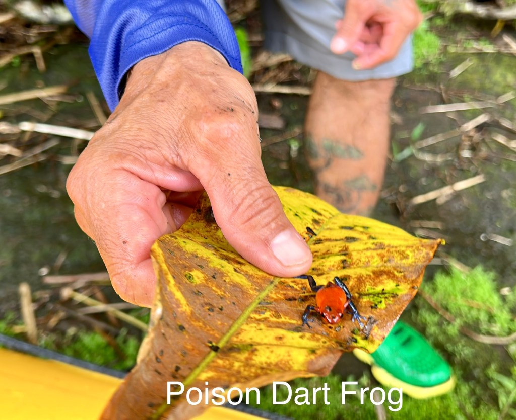 Towards the end of the rafting, our guide beached our raft and jumped onto the riverbank and succeeded in catching a poison dart frog to show us. I was unbelievably nervous! The last thing I wanted was to happen was for anyone to get stug by a poison dart frog. We survived it and it added to the wildness and unexpected fun of the adventure. Perfect Day!