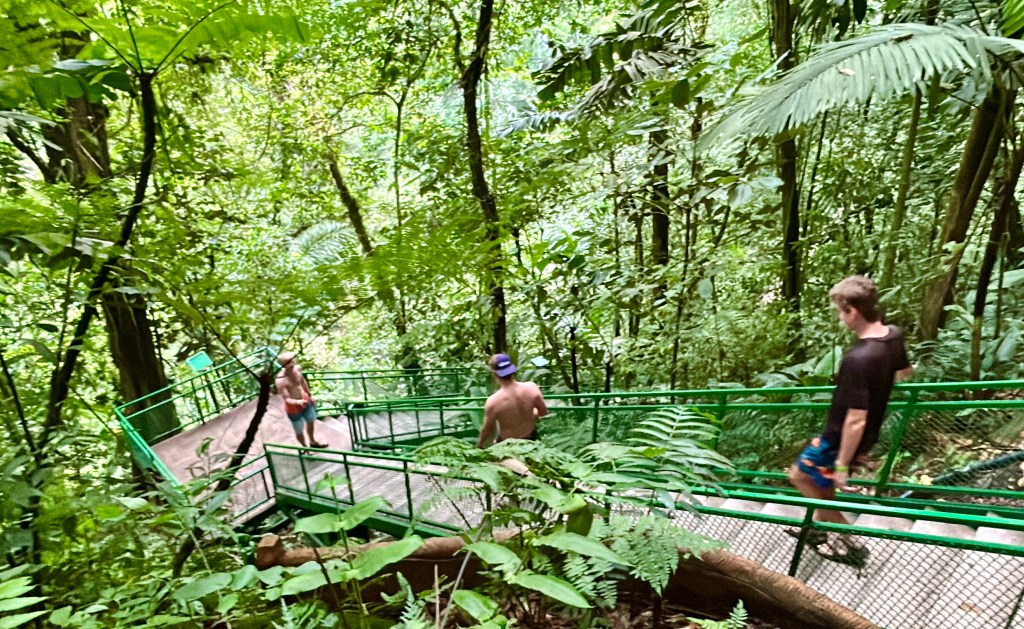 La Fortuna Waterfall! We were so excited to hike and experience this waterfall. I had seen so many gorgeous pictures of the waterfall and couldn’t believe we were there to see it, feel it and experience it. I had read that there were 500 steps down to the waterfall and I thought it wouldn’t be such a big deal but I quickly learned that IT WAS A BIG DEAL! You need to be in decent shape to do this many steps. Luckily there are plenty of benches and places to stop and rest along the way but allow yourself enough time to make the trek.