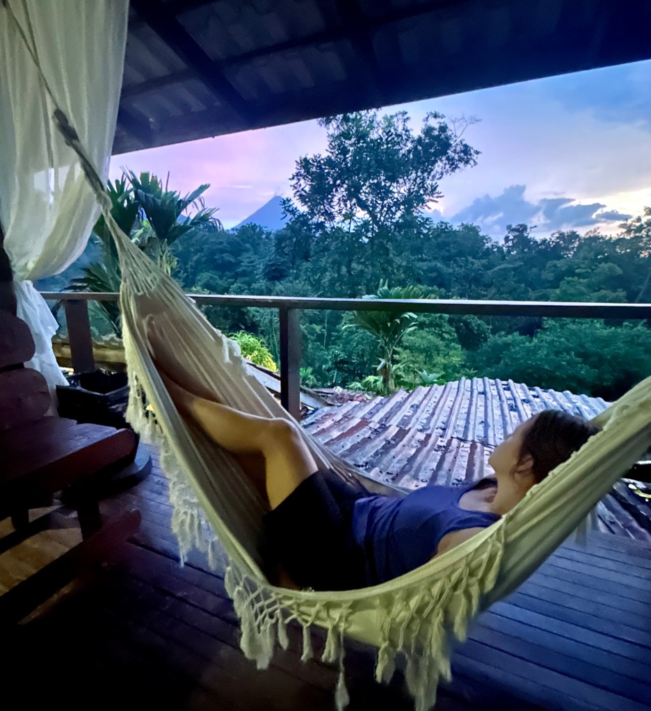 We enjoyed the rest of the evening at the EcoLodge – laying in the hammocks, napping & listening to the light rain failing. The views of the volcano from the hammocks were incredible!
