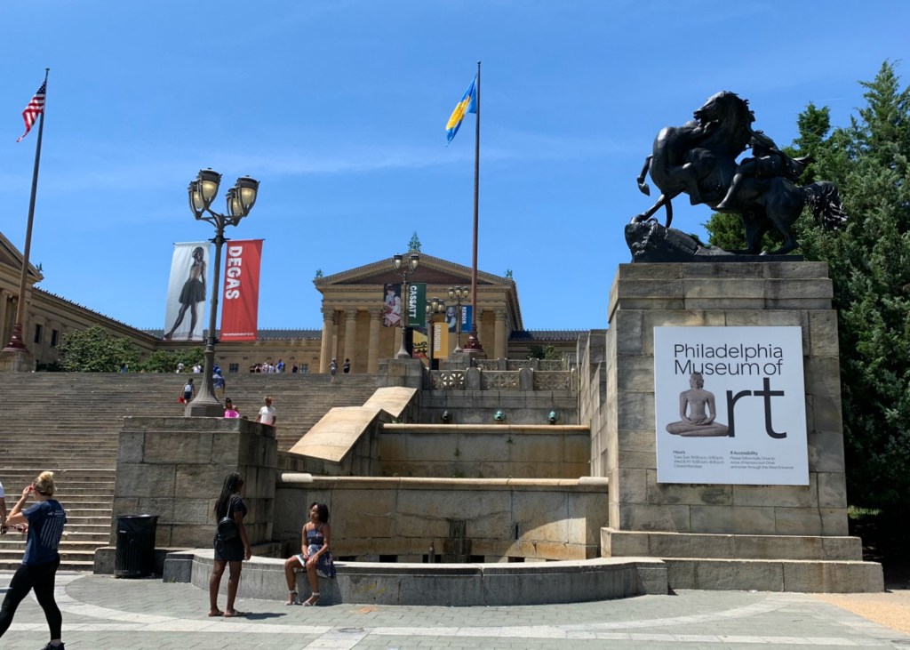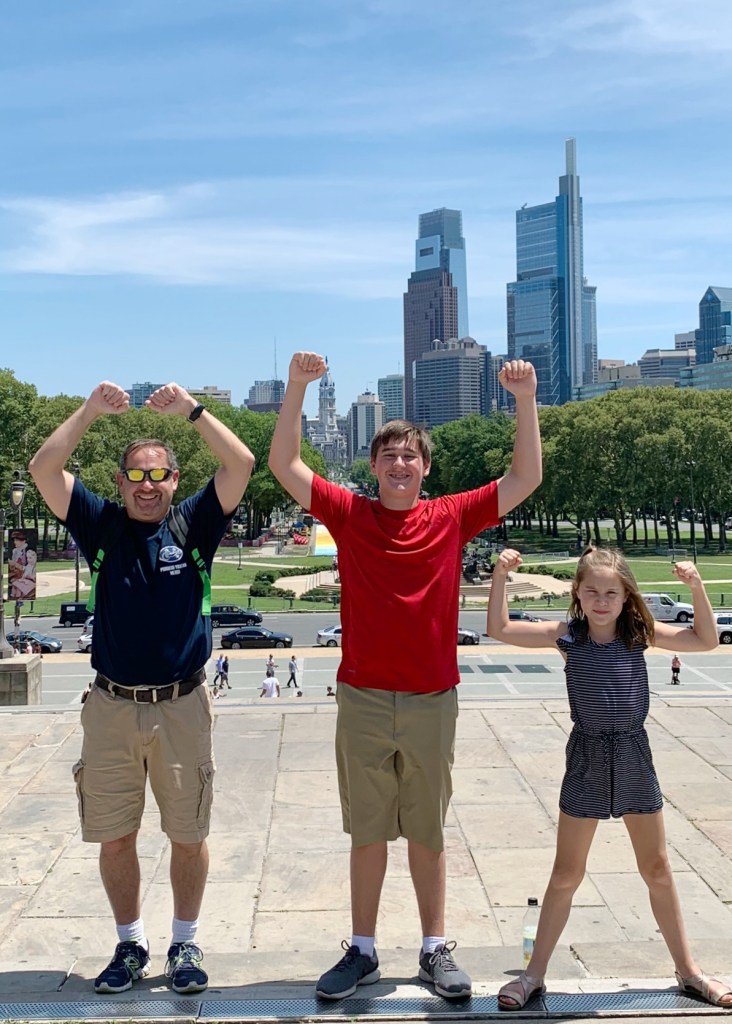 There are 72 steps to climb to re-create what Sylvester Stallone did in the Rocky movie. We started strong but quickly realized we hadn’t trained like Rocky to be able to run up them all. We took the famous picture from the top of the stairs with a view of the Philadelphia city skyline.