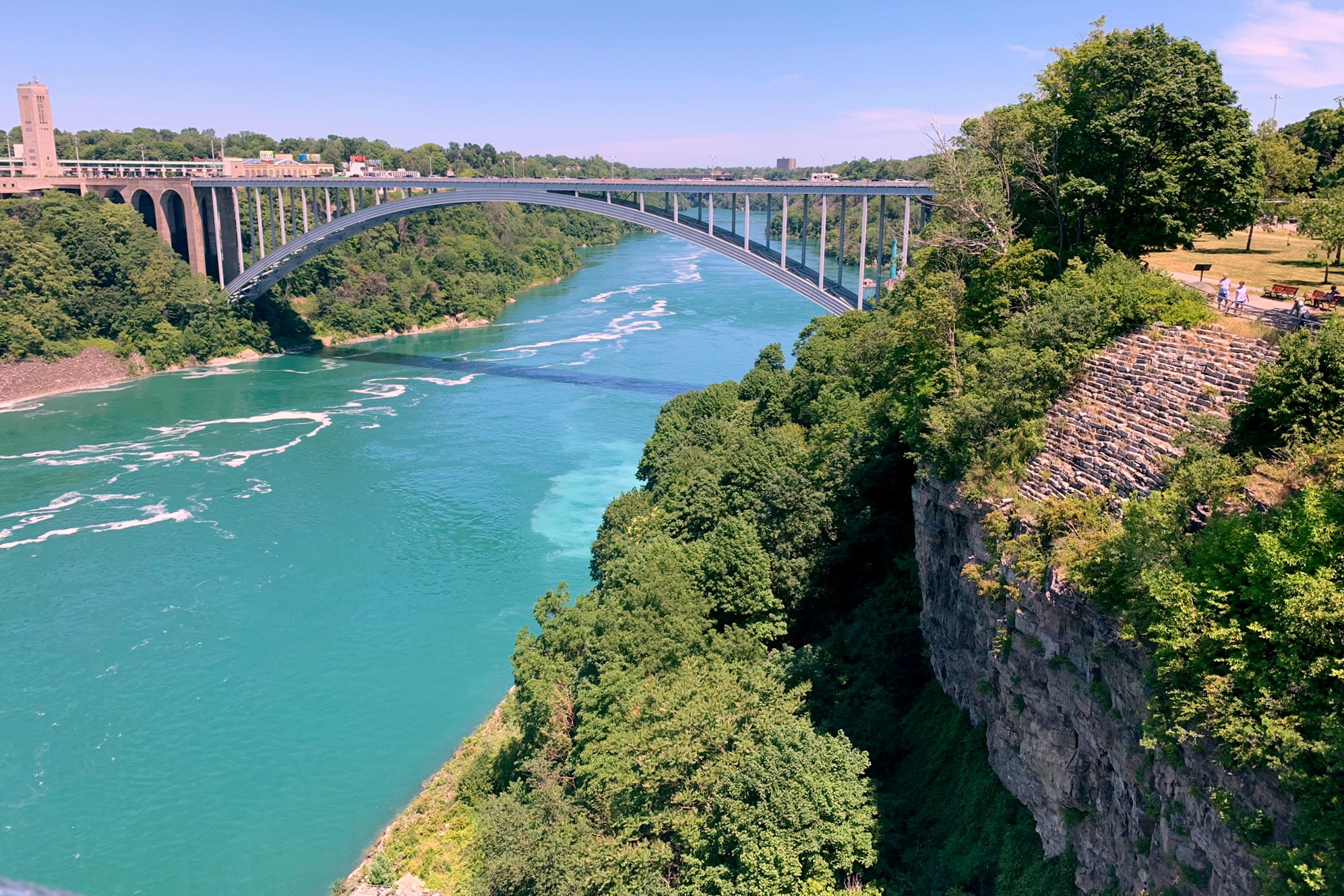 The Niagara Observation Tower gives you the best views of the Falls and the Niagara River. There are elevators at the Observation Tower which you can take to the base of the gorge and also board the Maid of the Mist boat tours. There is also a trolley that will take you through the park. We were able to walk the park without any challenges but it would be a great option to take the trolley.
