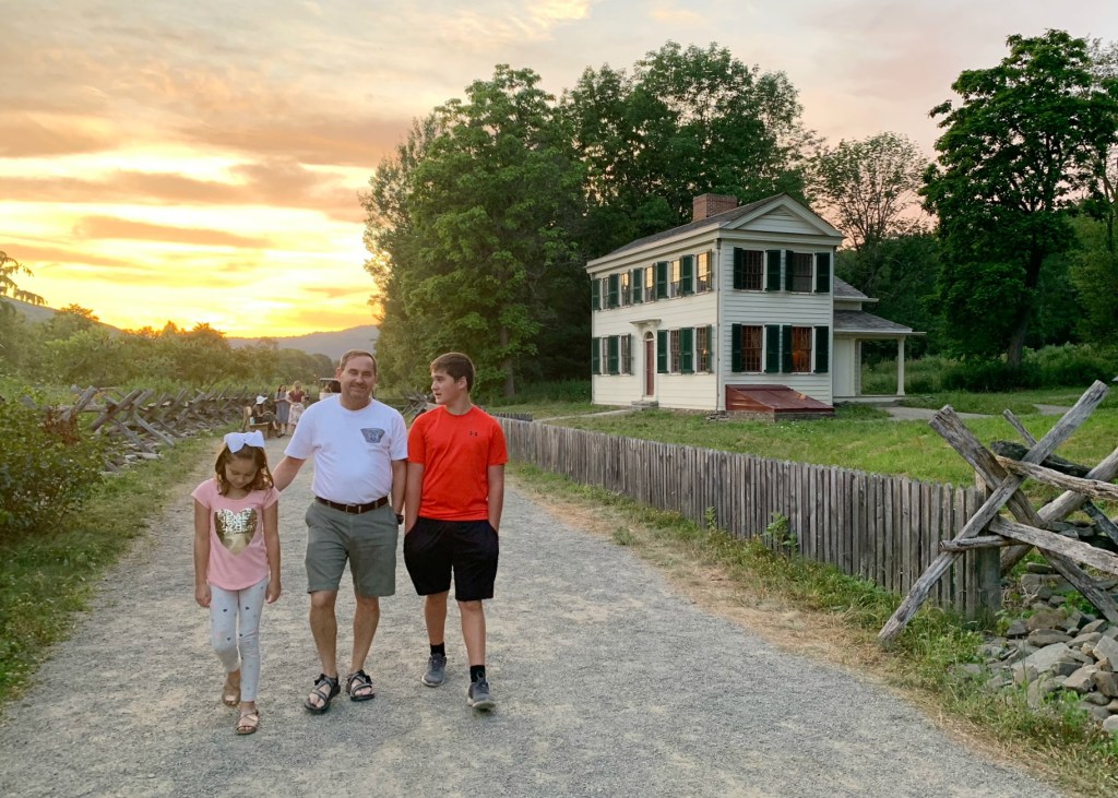 The Smith Family Farm has so much to explore: The Sacred Grove Welcome Center, Joseph’s Boyhood Home, Smith Farm Home, Threshing Barn and Copper Shop. We spent about an hour exploring these locations with a guided tour from one of the many missionaries on the property. Our favorite was Joseph’s Boyhood Home. It was humbling to see the low ceilings and feel how small the house was compared to current homes. It was incredible to be in the place where so many special moments occurred and to know that Joseph Smith was raised by his family between those 4 walls.