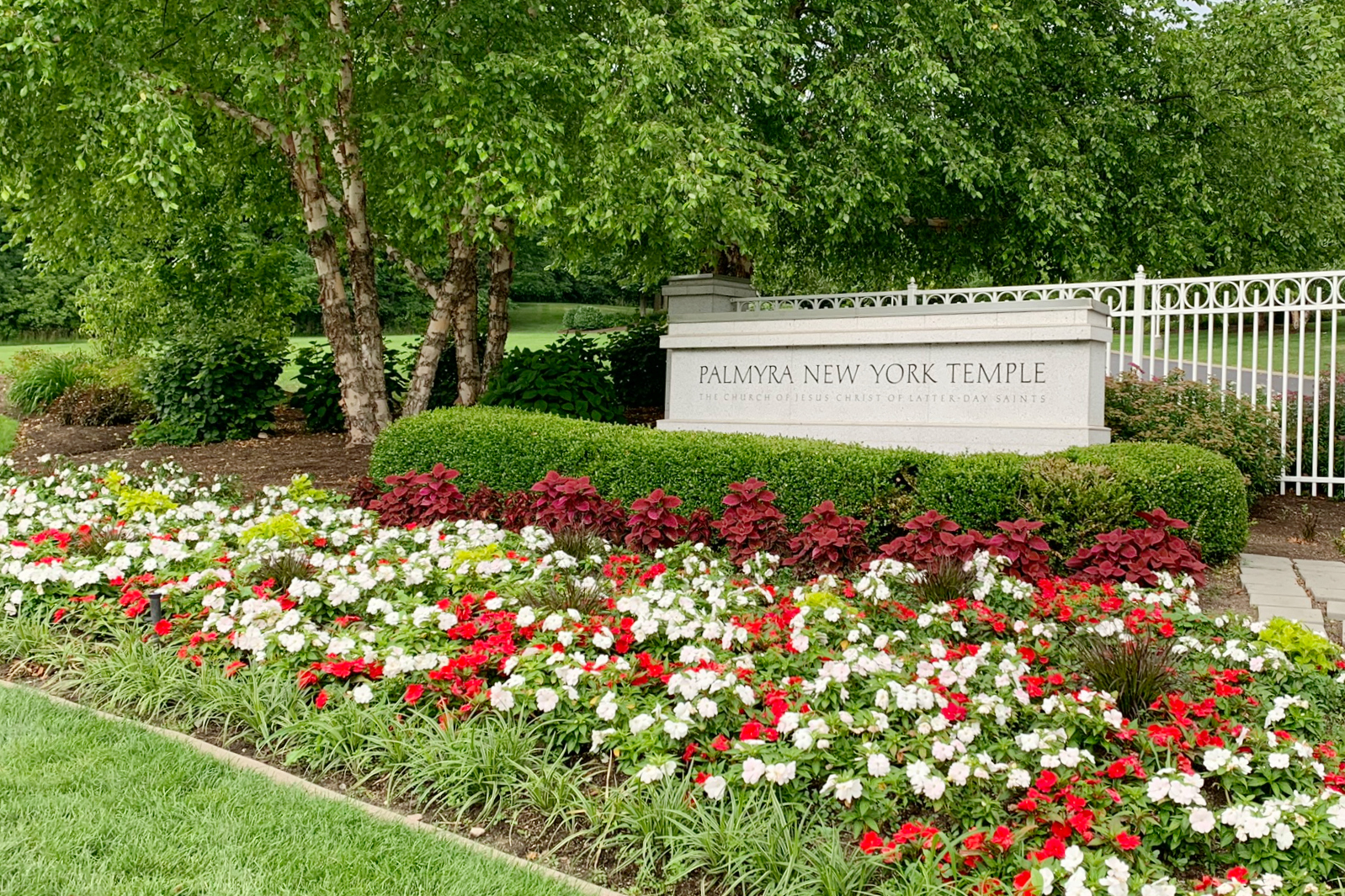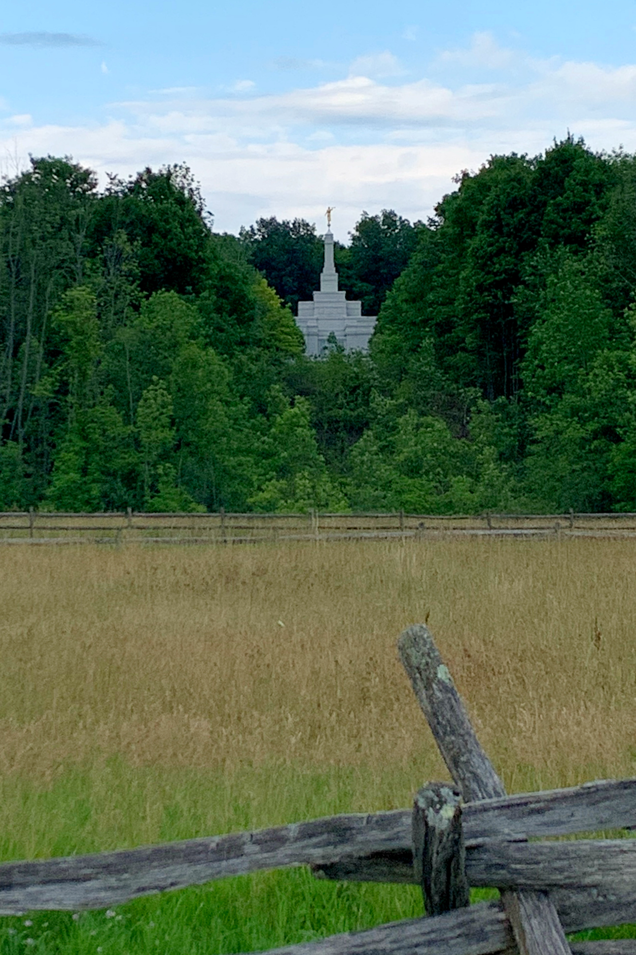 Palmyra New York Temple. The Temple is less than a mile from the Smith Family Farm and the Sacred Grove. It was amazing to be able to see the top of the temple through the trees of the farm. What a spectacular sight that would have been for the members of the Smith family? The Palmyra New York Temple was announced on February 9, 1999 and dedicated by President Hinckley on April 6, 2000.