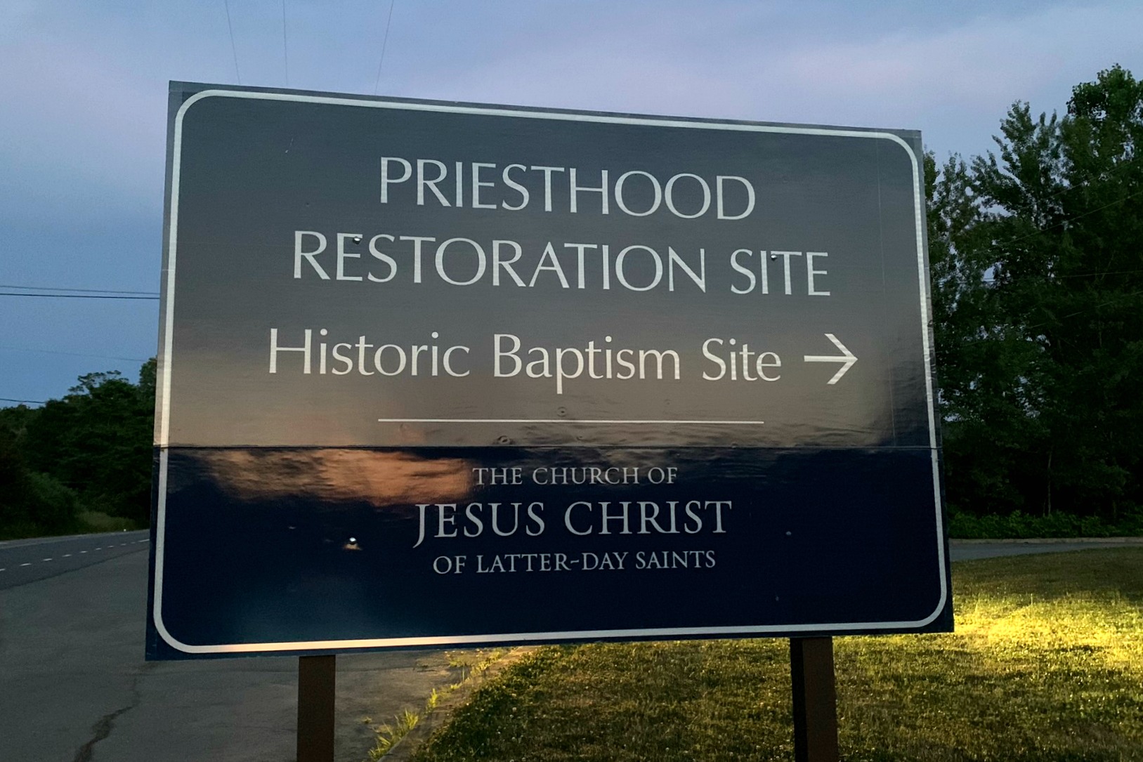 The Priesthood Restoration Site in Susquehanna Pennsylvania is 2.5 hours (155 miles) from the Hill Cumorah and Smith Family Farm sites in New York. There is a Visitors Center, several statues and reconstructed homes all commemorating the events surrounding the translation of the Book of Mormon and the restoration of the Aaronic Priesthood.