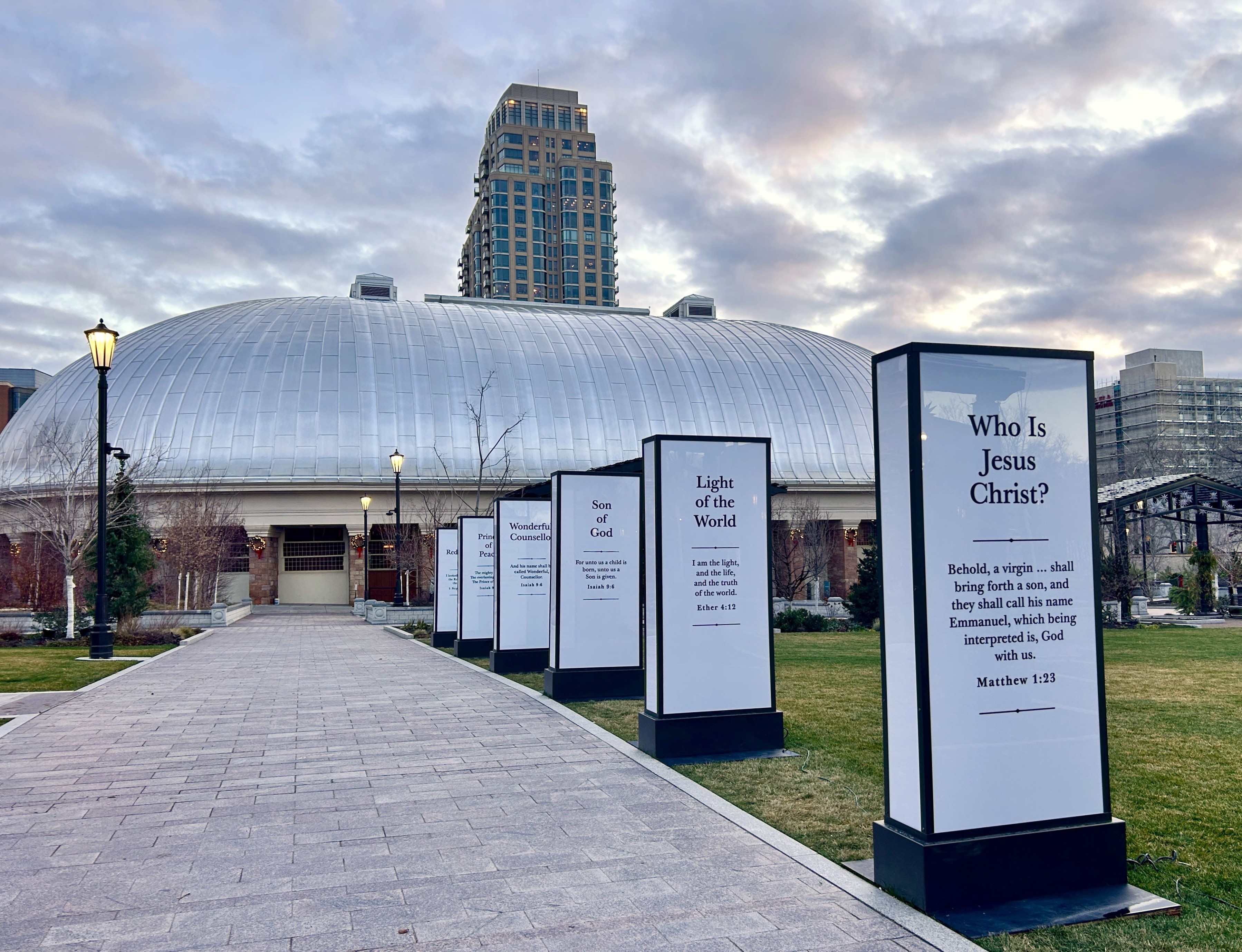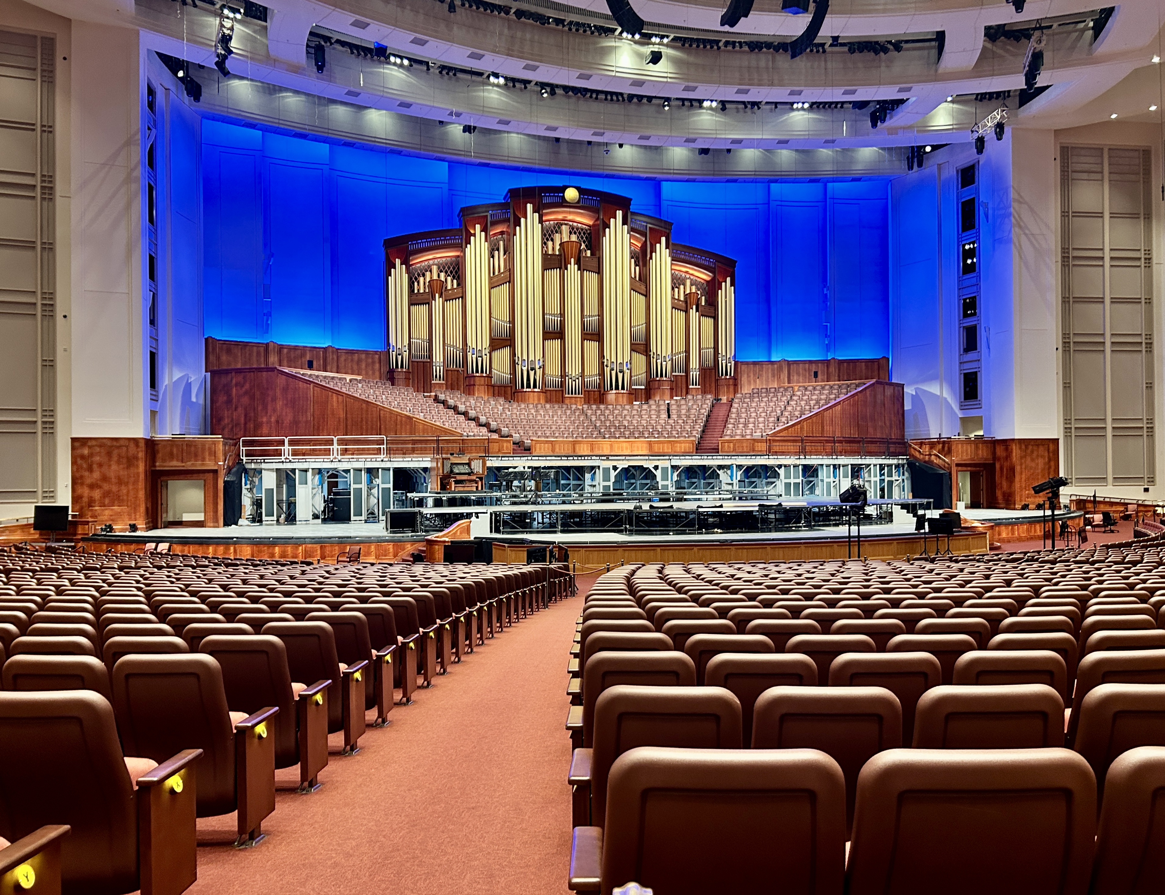 The Conference Center was completed in 2000, seats 21,000 people and has no interior support columns to block views. “Twice a year this building hosts general conference sessions of The Church of Jesus Christ of Latter-day Saints, where leaders share inspired messages centered on Jesus Christ. These addresses are translated into more than 100 languages and are broadcast worldwide, allowing people everywhere to hear words of hope and peace. The Tabernacle Choir and Orchestra at Temple Square also perform here. The auditorium houses a 7,000-pipe organ, and the venue hosts concerts such as Music & the Spoken Word and the annual Christmas with The Tabernacle Choir.”